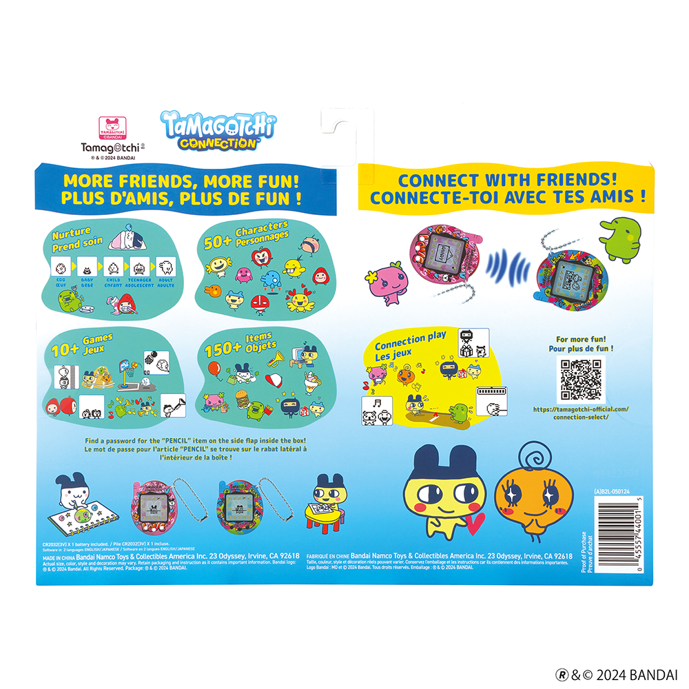 Using infra-red technology, your Tamagotchi character can connect with others to make friends, play gmes and exchange gifts! Find a compatible friend and you can raise several generations of Tamagotchi characters.